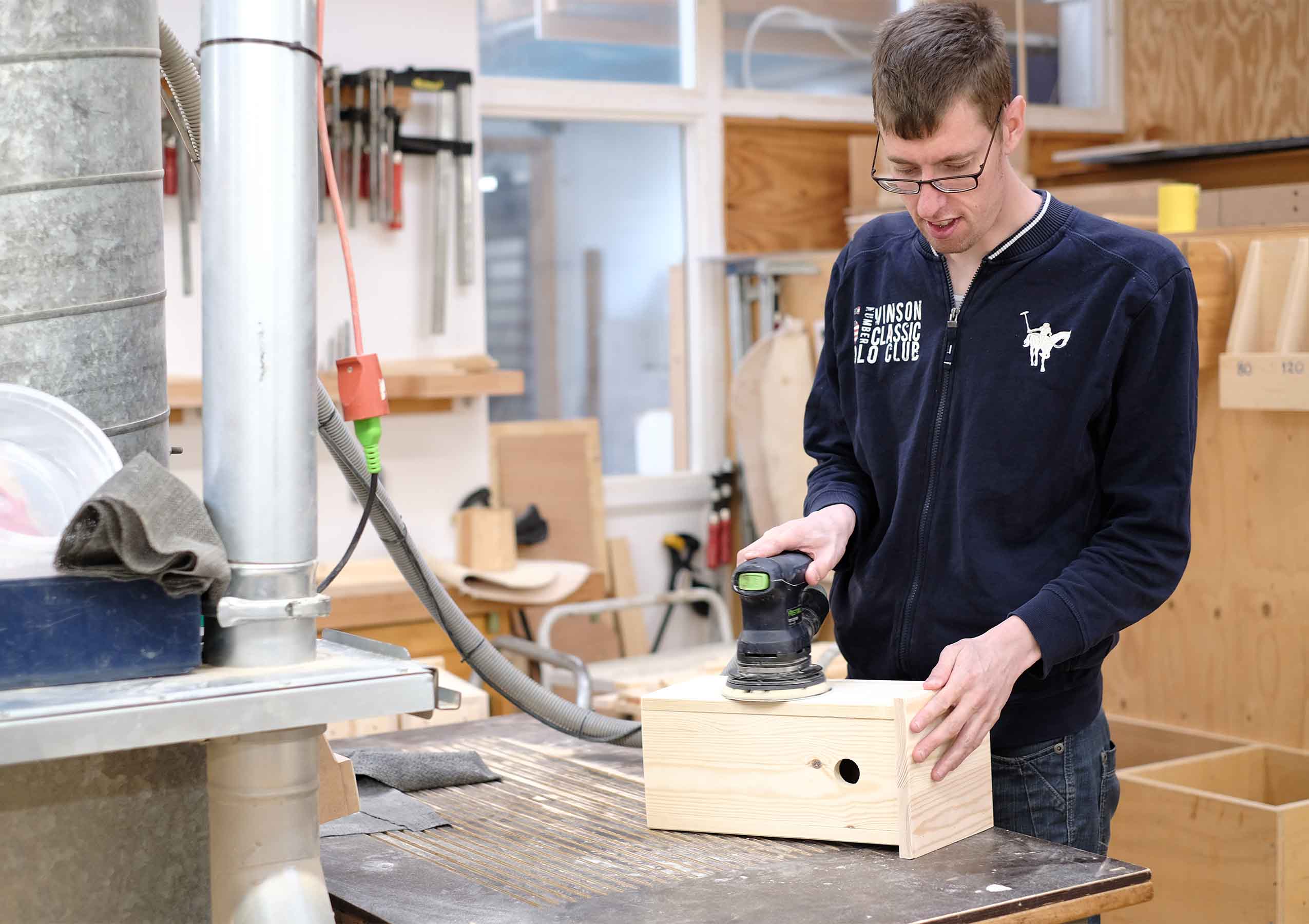 På Snedkerværkstedet kan du arbejde med træ og snedkerarbejde. Arbejdsopgaverne er varierende og spænder lige fra finere træarbejde i hånden til udskæringer og tilslibninger ved større maskiner.