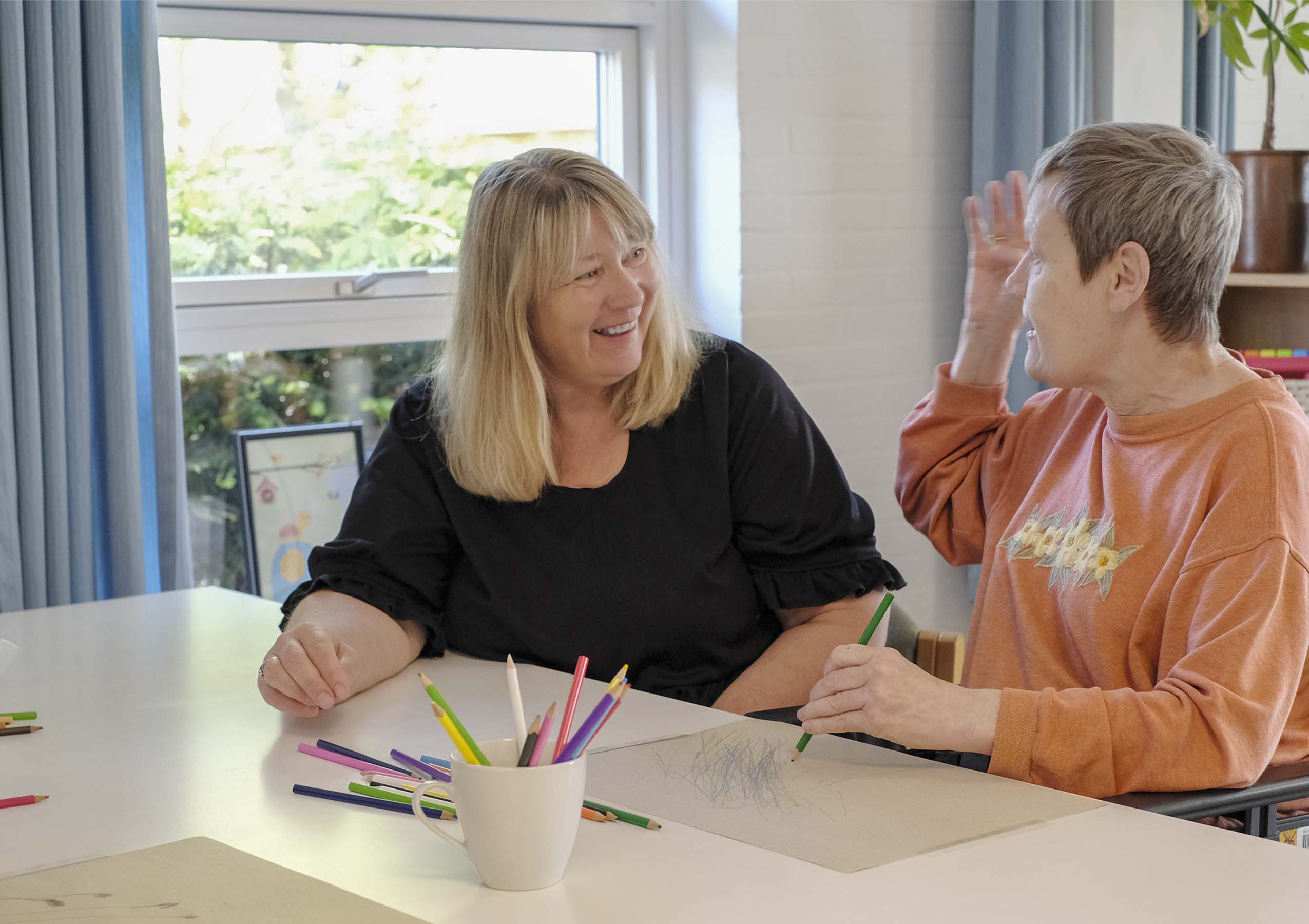 Vi tilbyder en række fællesaktiviteter, som bliver tilpasset dine individuelle behov. Vi lægger vægt på at se mulighederne i dine kompetencer og rykker hele tiden grænserne for, hvad vi kan sammen. Vi udfordrer dig kontinuerligt, fx gennem kreative aktiviteter, der øger din evne til fordybelse.