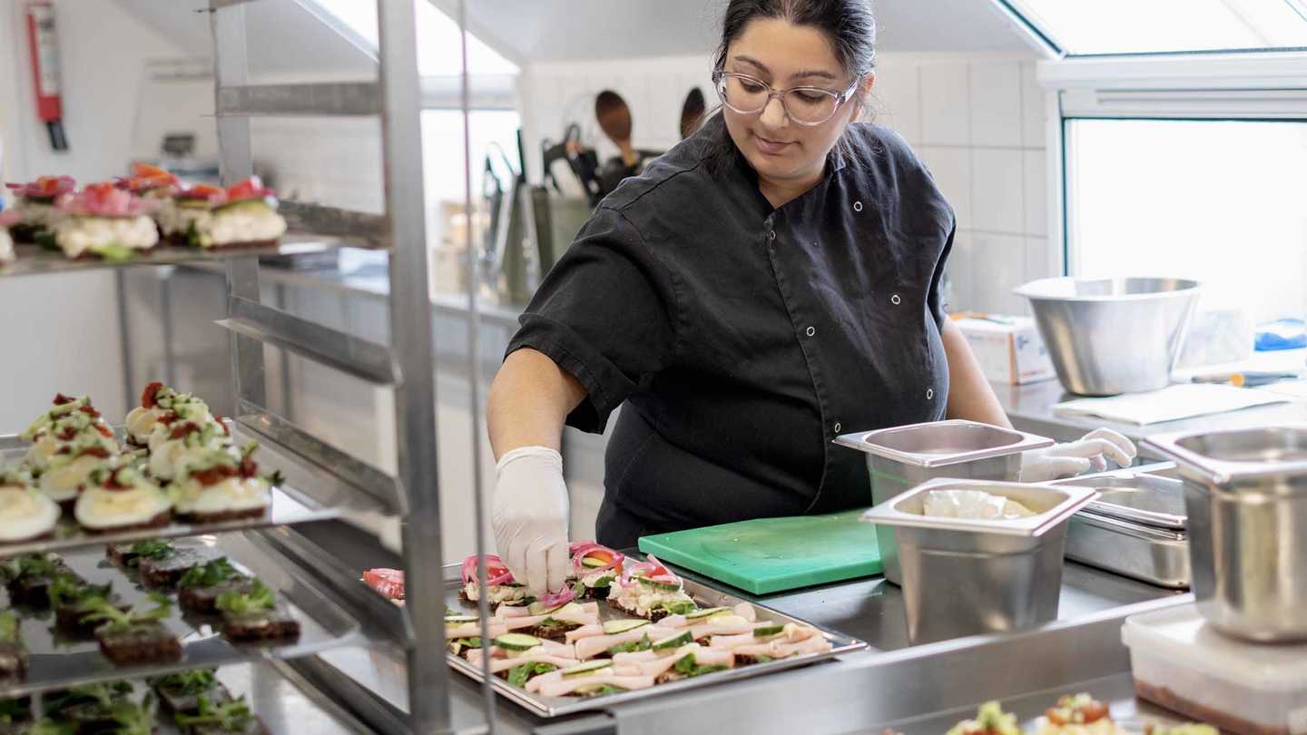 Vi giver dig den nødvendige støtte og fleksibilitet i arbejdet, så du kan arbejde og udvikle dig i dit eget tempo. Du bliver oplært i madlavning, køkkenarbejde, kundebetjening og i at bruge vores køkkenmaskiner. Du kommer også på hygiejnekursus.